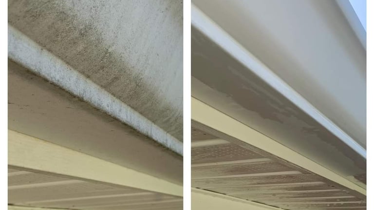 Once the gutters are clean, it is a good idea to clean the outside faces of the gutters as well. With this service, we use a gentle wash removing mold, wool, and stains.